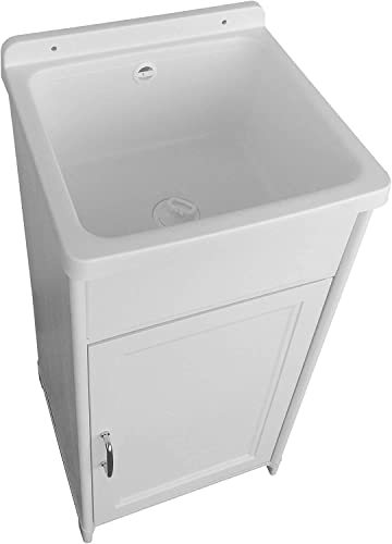 Lavello/Lavatoio salva-spazio in resina PVC (indicato anche per esterno); Dimensioni ridotte per chi non ha molto spazio (40x40x86,6 cm); Vasca in resina pp, resistente a tutti gli acidi di uso comune e agli agenti atmosferici; Pratico vano inferiore portaoggetti con ripiano interno, anta a chiusura magnetica; Particolarmente indicato per terrazzi, garage, giardini, e locali umidi in genere, fornito in kit di montaggio (assemblaggio semplice e intuitivo); Prodotto Made in Italy.