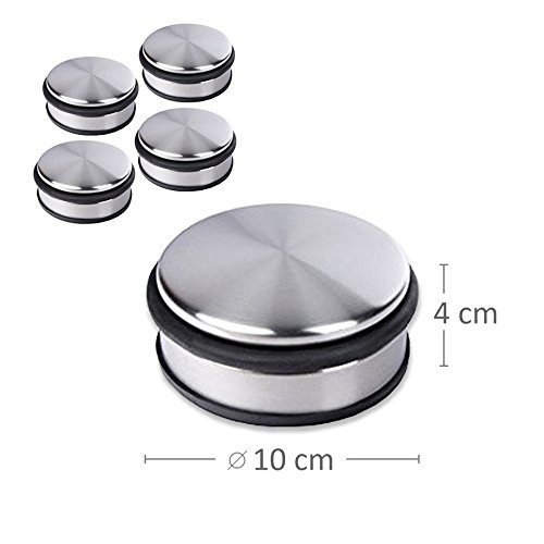 Schramm – Set di 4 fermaporta piatti in acciaio inox lucidato di alta qualità, con pratico bordo in gomma per evitare graffi e danni alle porte o all’inventario, base con piedini in gomma, quindi non scivolano. Peso approssimativo: 1,2 kg per fermaporta, dimensioni approssimative: diametro 10 cm x 4 cm, riceverai 4 fermaporta.