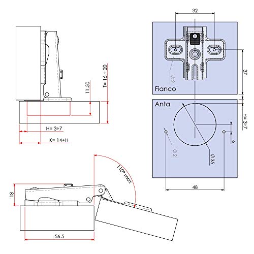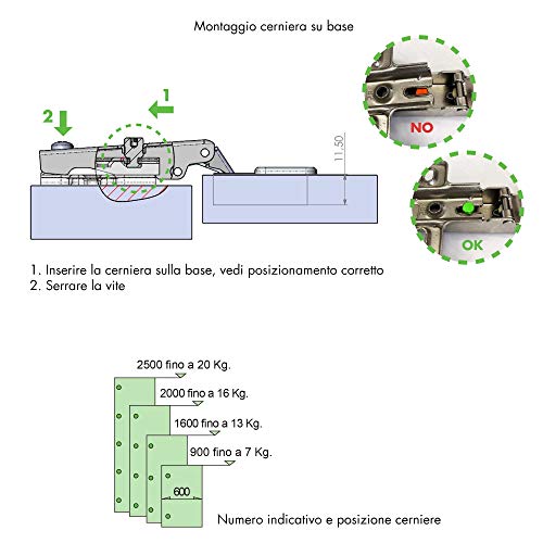 Specification: Kit 10 Cerniere Made in Italy per mobili con ante in legno, acciaio nichelato