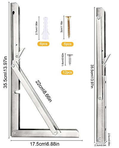 Specification: Viesap Staffa Pieghevole350mm, 2 Pezzi Mensola Pieghevole, Staffe Mensole Pesanti, Staffe Pieghevoli Inox, Supporto Tavolo Staffe Carico Massimo 65 KG, Per Garage, Cucina, Camera Da Letto Salvaspazio.