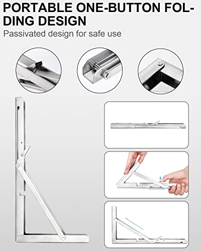 【Acciaio inossidabile 304】 Le staffe per ripiani pieghevoli sono realizzate in acciaio inossidabile 304 lucidato di alta qualità con una finitura spazzolata per resistere ai graffi quotidiani, alla corrosione o all’appannamento, rimangono luminose come nuove. Nota: schede solo a scopo dimostrativo, non incluse.