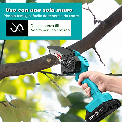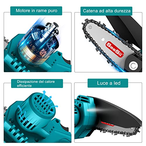 Specification: Mini Motosega a Batteria Portatile, Seesii 4 Pollici Sega a Batteria per Potatura con 2 Batterie 2000 mAh, Motosega Elettrica Per il Taglio del Legno e Giardinaggio, 2 Catene