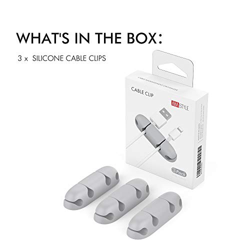 Specification: AHASTYLE Durevole Organizer a Clip per Cavo in Silicone Confezione da 3 fermacavi da scrivania adesivi forte per cavi USB cavo di alimentazione cavi per casa e ufficio (Grigio)