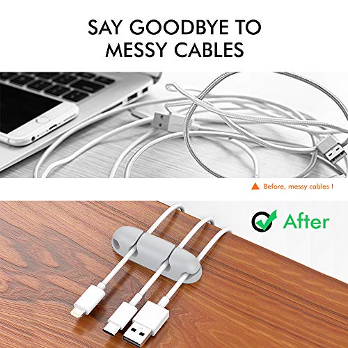 AHASTYLE Durevole Organizer a Clip per Cavo in Silicone Confezione da 3 fermacavi da scrivania adesivi forte per cavi USB cavo di alimentazione cavi per casa e ufficio (Grigio)