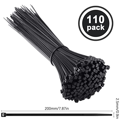 Specification: Vinabo Fascette Plastica per Cablaggio, Fascette Elettricista Nylon Cavi Stringicavo 200 x 2,5 mm, Fermacavo Nere Elettricista,110 Pezzi, Nero
