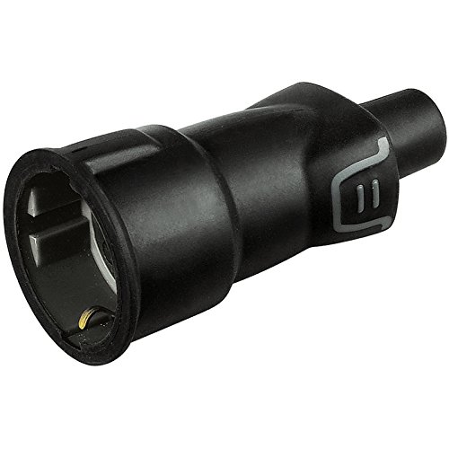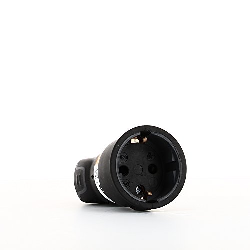 Presa in caucciù bimateria con alta resistenza meccanica agli urti, calpestabile e con grado di protezione IP44 per utilizzo all’aperto. Standard franco/tedesco.