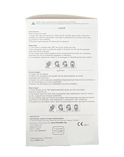 Specification: SALO MED – 20 Mascherine FFP2 NR SMALL – Certificate CE 2841 – Adatte per visi piccoli – Imbustate Singolarmente – 5 Veli Protettivi