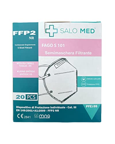 SALO MED – 20 Mascherine FFP2 NR SMALL – Certificate CE 2841 – Adatte per visi piccoli – Imbustate Singolarmente – 5 Veli Protettivi