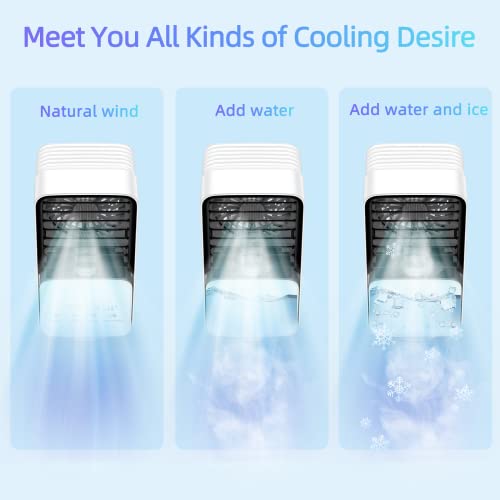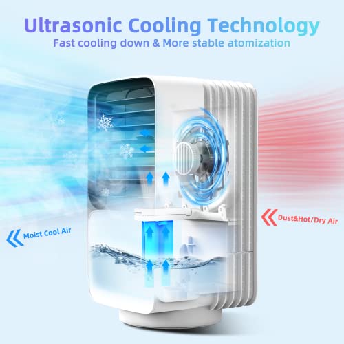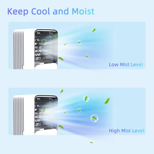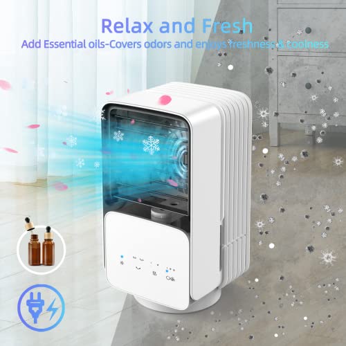 CONOPU Condizionatore Portatile, 700ML Raffreddatore d’aria con 3 velocità,4 in 1 Mini Condizionatore, Oscillazione 120°, 2 modalità di nebbia, Umidificatore, Ventilatori, Casa, Ufficio, bianco, large