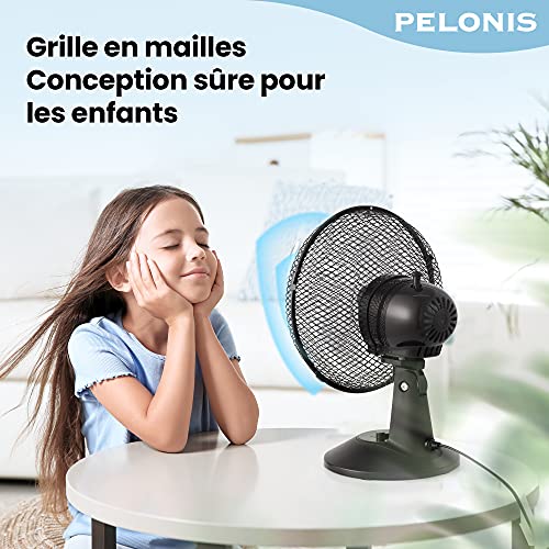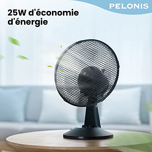 PELONIS Ventilatore da tavolo 25W, ventilatore portatile con 2 livelli di velocità oscillante, angolo di inclinazione ca. Funzionamento silenzioso a 20° per ufficio e camera da letto (9″ )