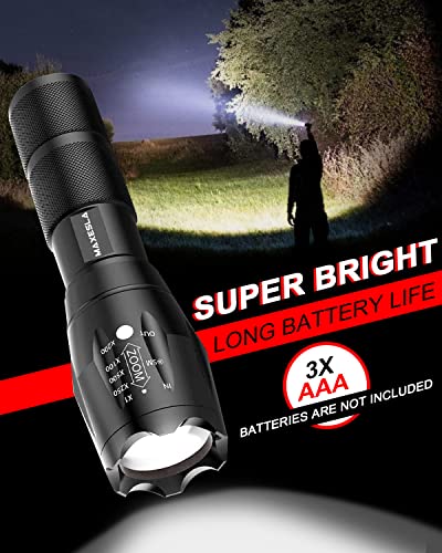 Maxesla Torcia LED Potente Professionale, 2 Pezzi Impermeabile 2000 Lumen Super Luminoso Mini Torcia Tattica, Portatile Torcia Militare Fuoco Regolabile, Torcia Potente 5 modalità di illuminazione