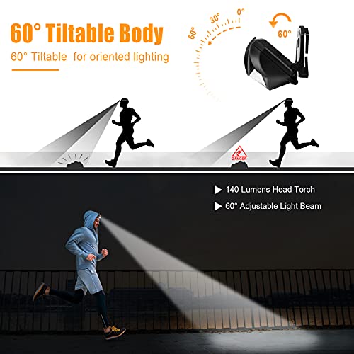 Torcia Frontale LED, Lampada Frontale LED 3 Modalità di Illuminazione Angolo di 60° Regolabile Luminosità 140 Lumen, Lampada da Testa LED per Campeggio, Escursioni, Pesca, Corsa (3 Batterie Incluse)