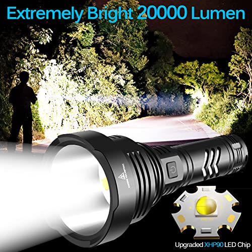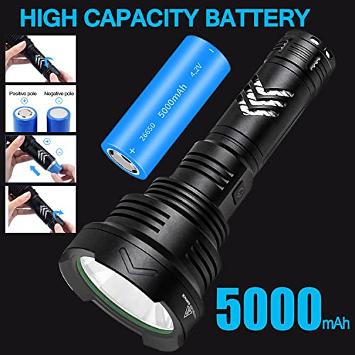 Specification: Torcia LED Potente Professionale 100000 Lumen Ricaricabile USB, Torcia XHP90 Tattica Alta Potenza, Torce Led IPX6 Impermeabile 5 Modalità di Luce con Batteria 5000mAh, per Camping Escursionismo