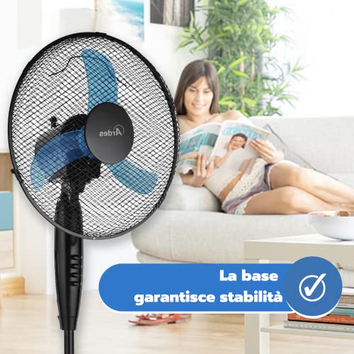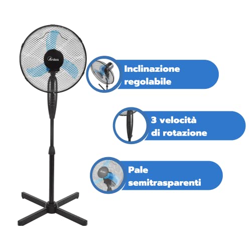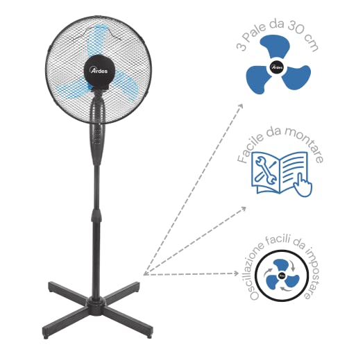 ARDES | AR5AM35P Ventilatore a Piantana Potente Silenzioso 3 Pale 30 cm Oscillante con Altezza e Inclinazione Regolabile Ventilatore a Stelo Ardes 3 Velocità Modello