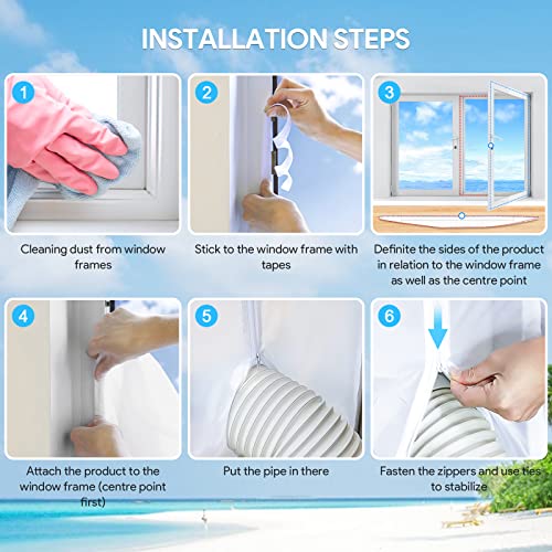 ⛲ 【FACILE DA INSTALLARE】 – Nessun utensile o foratura necessaria. Tutto ciò di cui hai bisogno viene fornito con il tuo sigillo finestra AUGOLA! Basta applicare il nastro adesivo gancio all’interno del telaio della finestra e alla finestra stessa, attaccare la guarnizione della finestra al nastro gancio. Aprire la cerniera e posizionare il tubo del condizionatore d’aria fuori dalla finestra. Quindi chiudere saldamente la cerniera attorno al tubo. La finestra rimane completamente funzionan