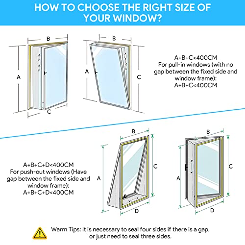 🌊 【Guarnizione Universale per Finestre per Condizionatore Portatile】 – Adatto a tutti i condizionatori d’aria portatili e asciugatrici. Applicaton per finestre che si aprono a sinistra o finestre che si aprono a destra, in basso appeso finestre o lucernari (non scorrevole finestra o porta). Lunghezza: 300CM, adatto per finestre con una lunghezza di tenuta totale inferiore a 300 cm.