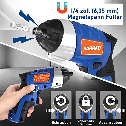 Specification: SORAKO Avvitatore Elettrico 6Nm Cacciavite Elettrico 3.6V con 30 Accessori, Cacciavite con Luce LED, 2 Direzioni di Rotazione, Indicatore Batteria e Caricabatterie, Professionale per Fai da Te